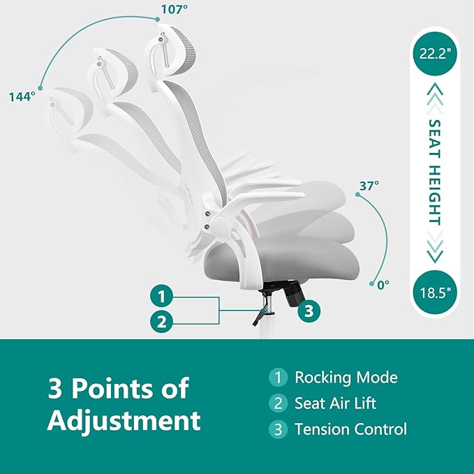 - 【Space-saving】Flip-up armrests are available and won't be in your way when not in use. The Armrests of the computer chair provide comfortable support for your arms and can be flipped up to save space effectively while not in use. It is perfect for the office, bedroom, study room, living room, or gaming room.