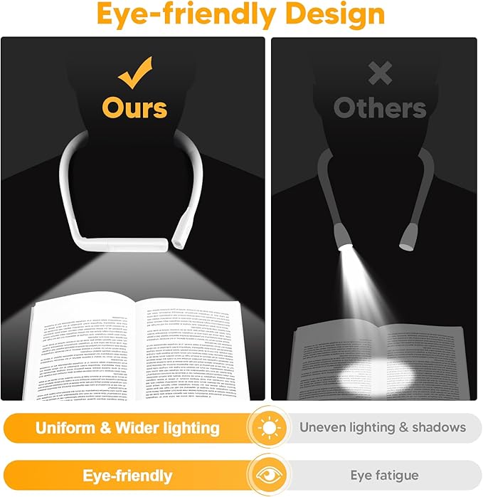 - Upgraded Eye-Friendly Reading Light: Unlike other brands, our book reading light features a rectangle lamp that provides uniform and soft illumination akin to a reading lamp. It eliminates flickering, shadows, and glare, reducing eye strain and fatigue