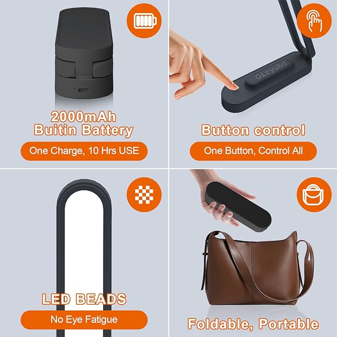 - 【SMALL TABLE LAMP MINI LAMP: PORTABLE, FOLDABLE, COMPACT】The small table lamp has a unique design. Portable lights are mini lights, wireless lights and battery lights, you can take battery powered lights anywhere. The foldable desk lamp is great for reading, can be used as a study light, and as a battery powered lamp! This battery-powered light provides a space-saving mini light. Such a versatile portable light battery light!