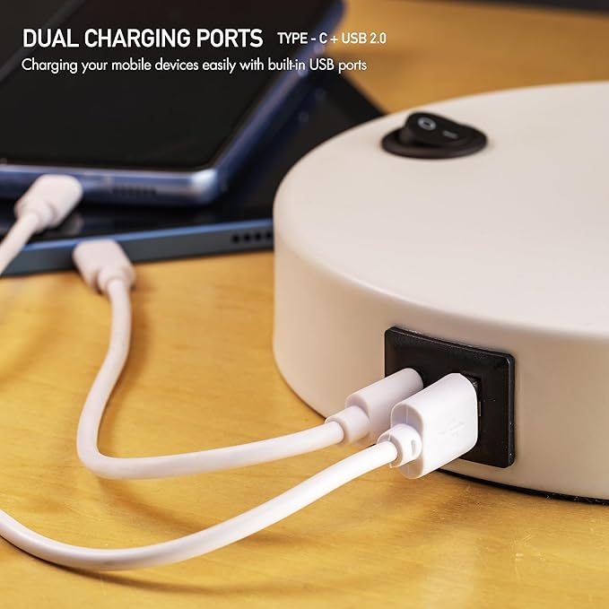 - Dual Charging Ports (Type-C, USB 2.0): Easily charge your mobile device while using the desk lamp with two charging ports ,supporting both Type-C and USB 2.0 connections. The bedside reading lamp is built-in a USB charger, offering fast charging capabilities of up to 10 Watts