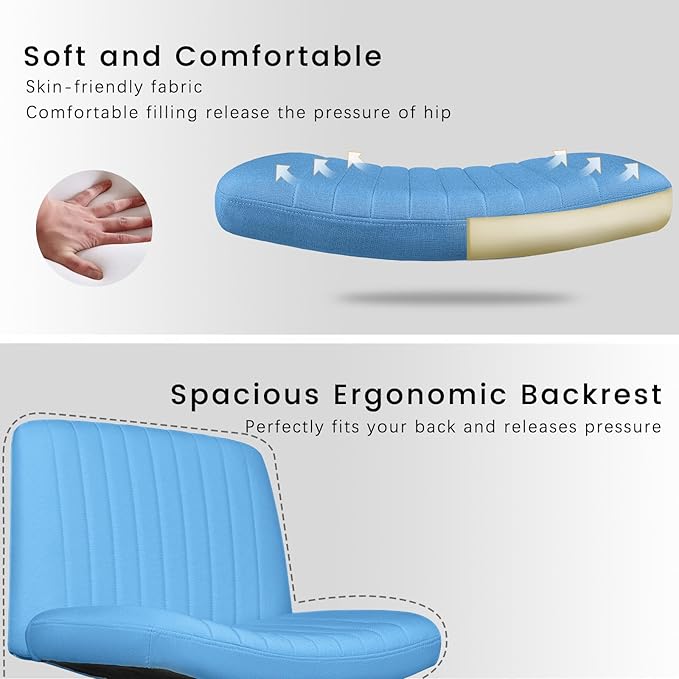 PUKAMI Criss Cross Chair with Wheels,Fabric Padded Armless Cross Legged Office Desk Chair for Home Office,Modern Swivel Height Adjustable Wide Seat(Blue)