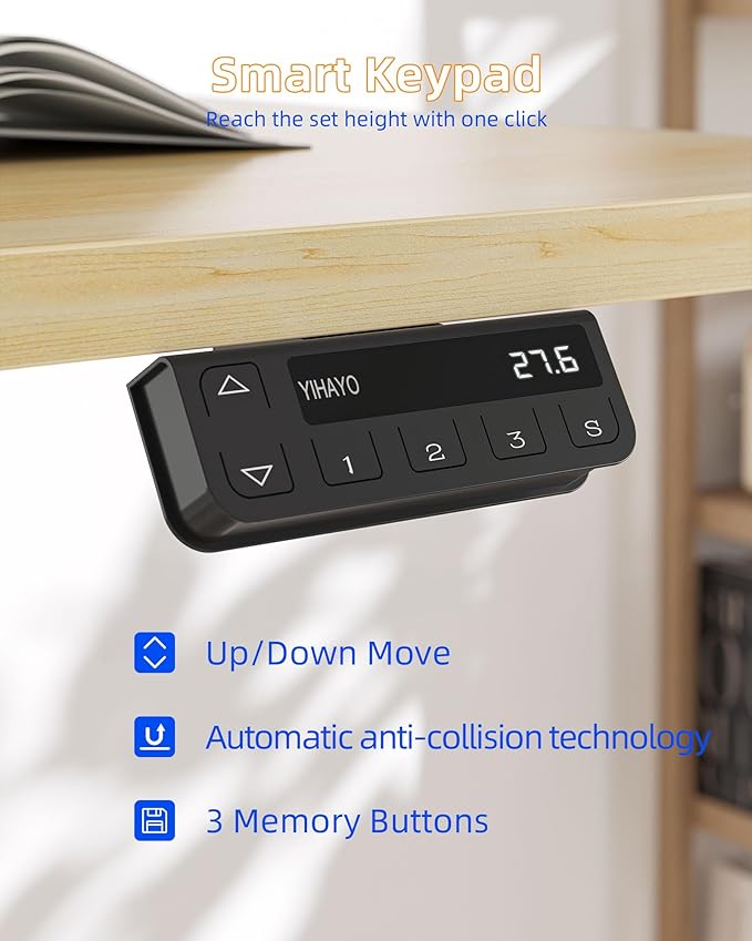 - 【Adjustable Desk】The YIHAYO electric standing desk adjusts from 27.6 to 45.3 inches, accommodating both children and adults. It includes a memory function to store 3 preferred heights for easy one-touch switching between sitting and standing