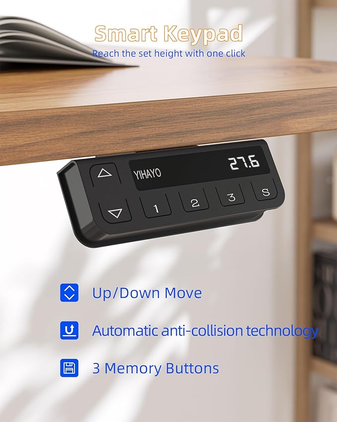 - 【Adjustable Desk】The YIHAYO electric standing desk adjusts from 27.6 to 45.3 inches, accommodating both children and adults. It includes a memory function to store 3 preferred heights for easy one-touch switching between sitting and standing