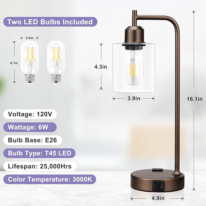 - MINIMALIST AND INDUSTRIAL STYLE LAMPS - This vintage desk lamp is designed with thick cylinder glass shade and a rust-proof matt brown metal body,perfectly combining classic and rustic styles!This modern lamp adds style to your place even in the light off. Suitable for all kinds of places such as bedrooms, living rooms, guest rooms,dorms,kitchens, offices, cafes, etc.Also perfect gift choice for festivals, birthday and housewarming~