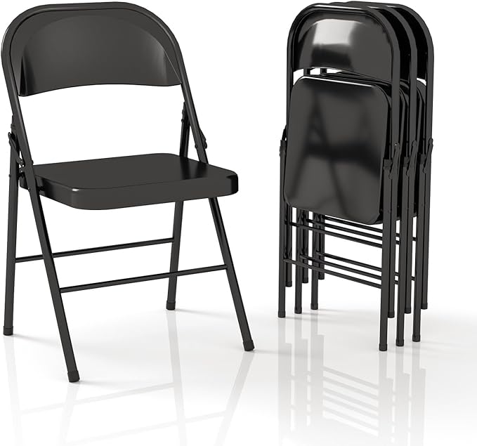 Metal Folding Chairs Steel Frame with Double Hinged for Office Kitchen Dinning Wedding Patio and Garden,No Assembly, Set of 4, Black