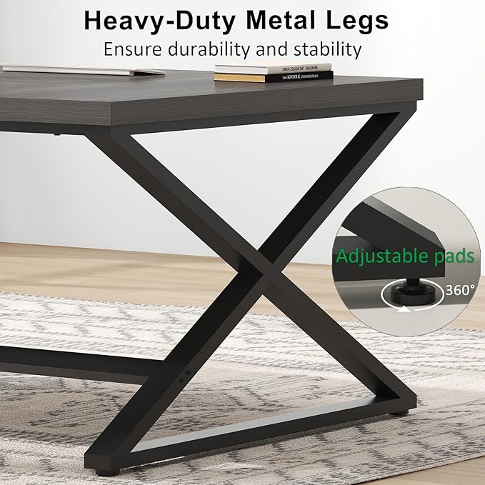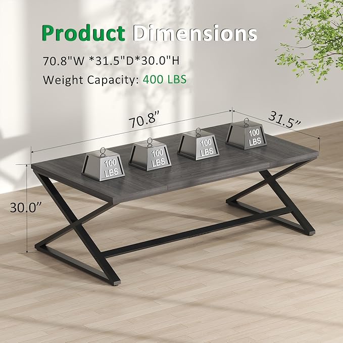 - 【Spacious Work Area with Ample Legroom】 Ingenious Space Layout, crafted from three delicately joined panels, measuring 31.5" in height, 70.8" in width, and 29.5" in depth, this large desk offers abundanct space to accommodate multiple monitors, PCs, laptops, printers, files, books, lamps, and all other essential office items, ensuring convenient access within arm's reach. This large home office desk designed with two open-structured x-shaped metal table legs, the large office desk provides plenty of legroom, promoting comfort during prolonged use.