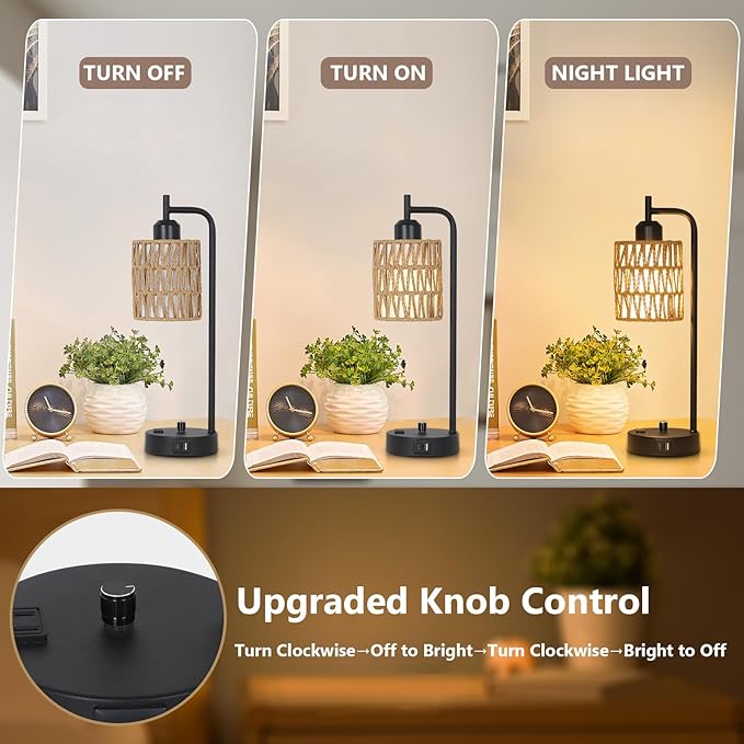- 💖【TWO LED BULBS INCLUDED】Our table lamp come with two LED bulbs, which are high quality, no flickering, no buzzing and less heat output, for efficient and energy-saving lighting. The rattan fabric shade of lamps filters the light, makes the light easy on the eyes while brightly lit. This desk lamp is an exceptional choice to be a nightstand lamp, bedroom lamps, living room lamps, side table lamps, end table lamp, etc.