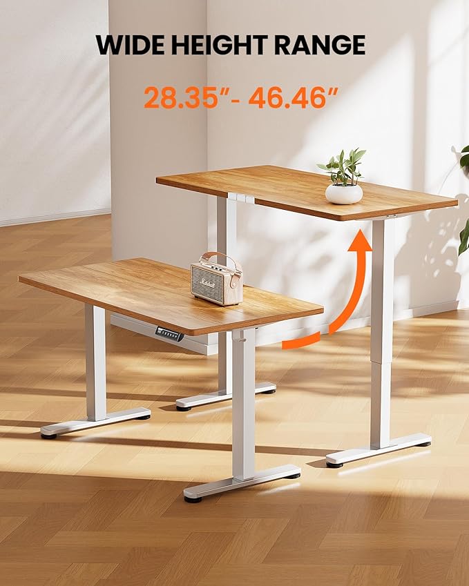 - Smooth Height Adjustment: Freely select electric standing desk height, from 28.35" to 46.46". Save your favorite three settings and smoothly switch between them