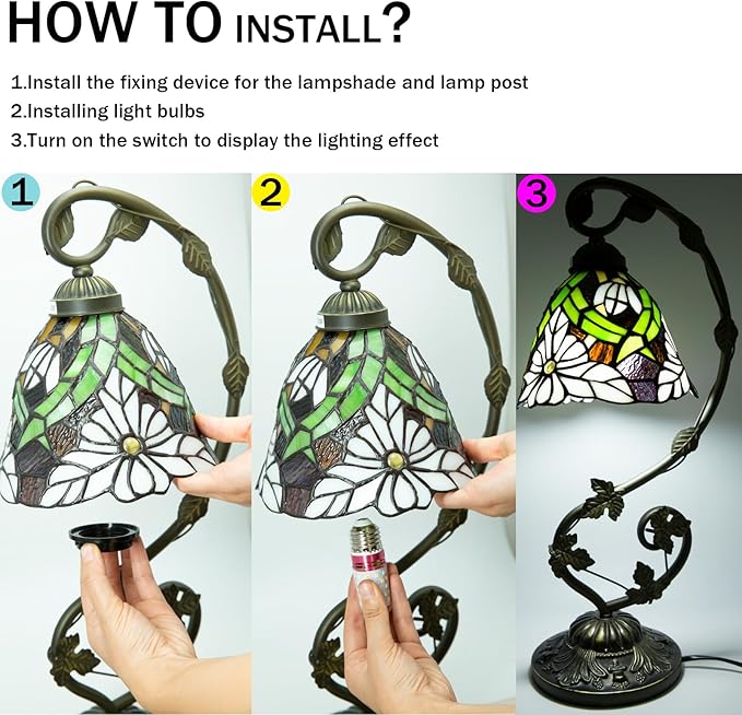 - 💡【Applicable scenarios】Tiffany lamps can not only illuminate, but also decorate your bedroom, living room, kitchen, dining table, office, children's room.