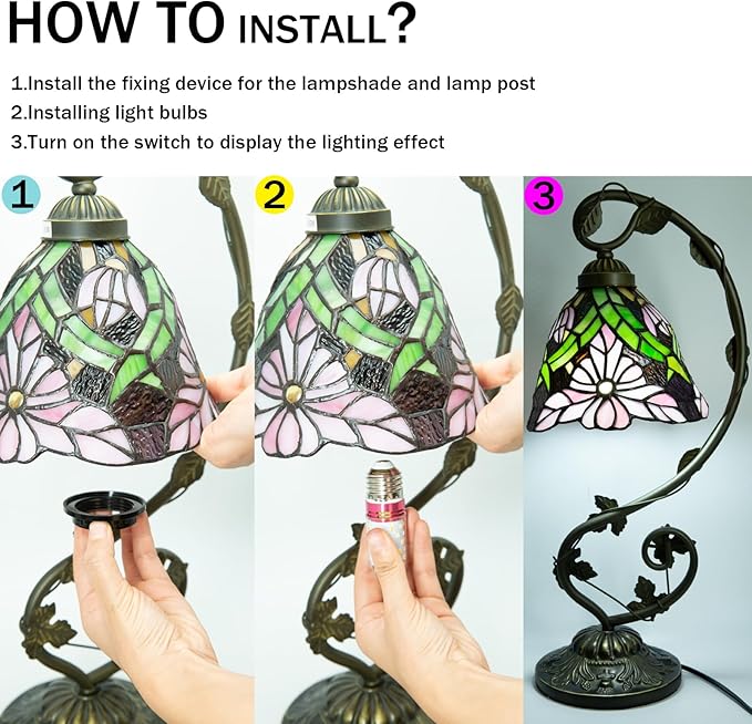 - 💡【Applicable scenarios】Tiffany lamps can not only illuminate, but also decorate your bedroom, living room, kitchen, dining table, office, children's room.