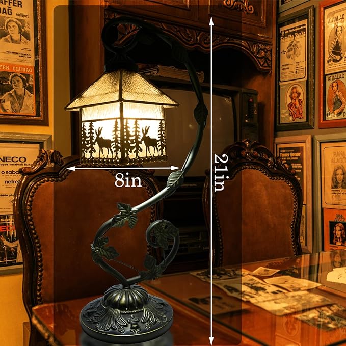 Tiffany Style Table Lamp, Small Stained Glass Lamp for Bedside, Bedroom, Nightstand, Living Room, 8 Inch Mini Vintage Handcrafted Desk Lights Included Three-Color E26 LED(Deer House)