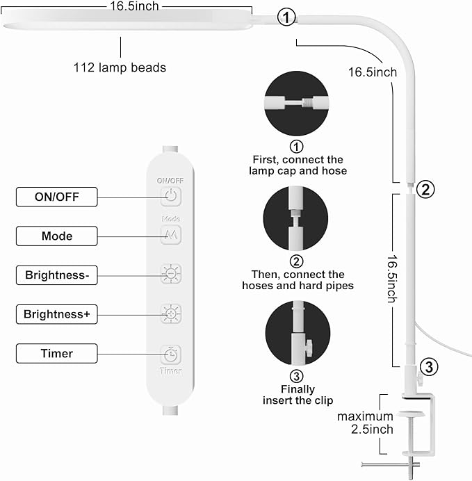 - Brightness: Set up a home office. SKYLEO clip on lamp with 1300 lumens(112 Pcs Lamp Beads), different brightness(3000~6000K) , And CRI≥90