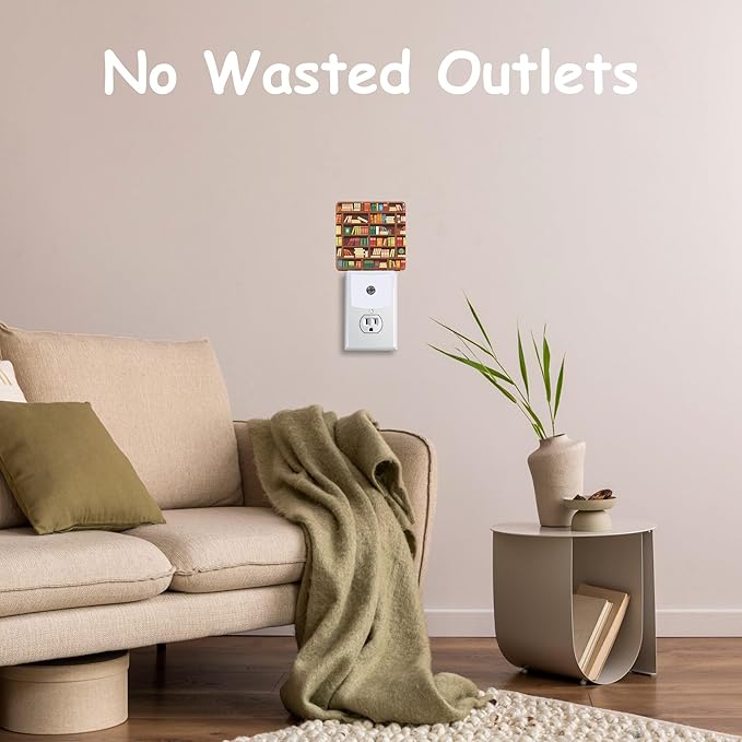 - 【Dusk to Dawn Sensor】This Retro Bookshelf night light plug wall is equipped with a light sensor that automatically turns on at dusk or dim light and turns off at dawn or when there is sufficient light.Its smart design saves power and eliminates the need for manual switching