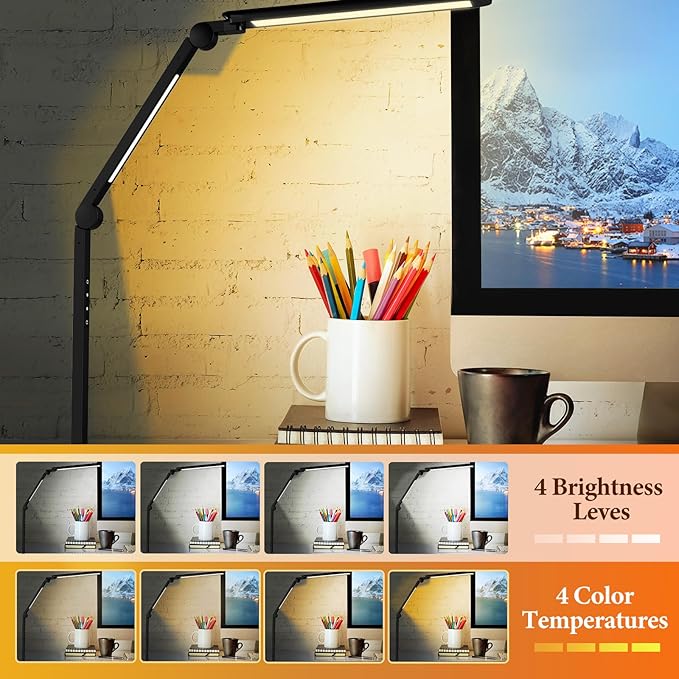 - [Memory Function]: The smart memory function enables the desk lamp to remember your last used brightness and color temperature settings, automatically restoring them the next time it's turned on. This eliminates the hassle of readjusting, making your use more convenient and comfortable.