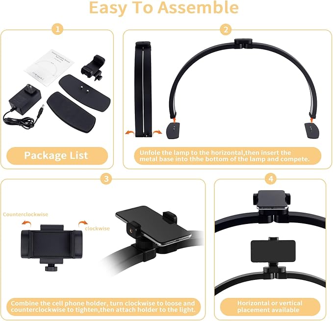 - 【Material Upgrade & Phone Stand】 Our half moon light is made of aluminum alloy + ABS bracket, which is heat-resistant and corrosion-resistant.In addition, the eyelash light is equipped with a mobile phone stand for live broadcast and shooting record the moment of manicure to ensure your best viewing position.