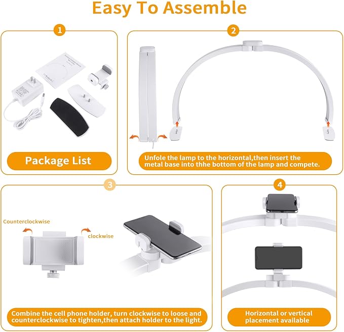 - 【Material Upgrade & Phone Stand】 Our half moon light is made of aluminum alloy + ABS bracket, which is heat-resistant and corrosion-resistant.In addition, the eyelash light is equipped with a mobile phone stand for live broadcast and shooting record the moment of manicure to ensure your best viewing position.