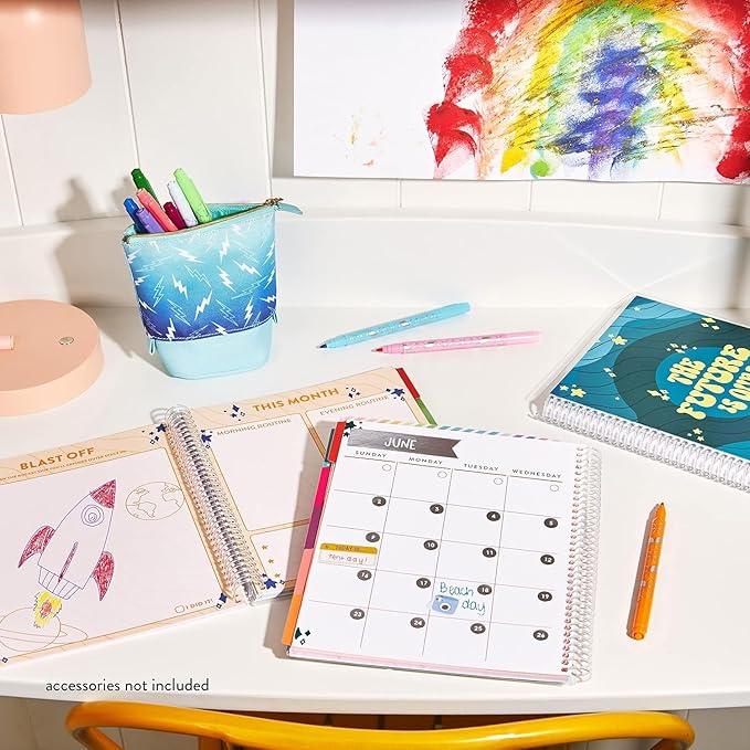 Erin Condren 7x9 Kid's Activity Book - Planetary Pop Classic Interchangeable Cover With Kid-Friendly Plastic Coil. Playtime, Activity Book and Coloring Book