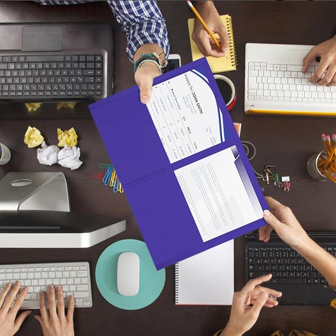 - TWO POCKET FOLDER SET: 50 Pack purple paper folders with 2 inner pocket and 2 business card slots. Deep pocket design can provide secure storage space for papers, files or other important materials