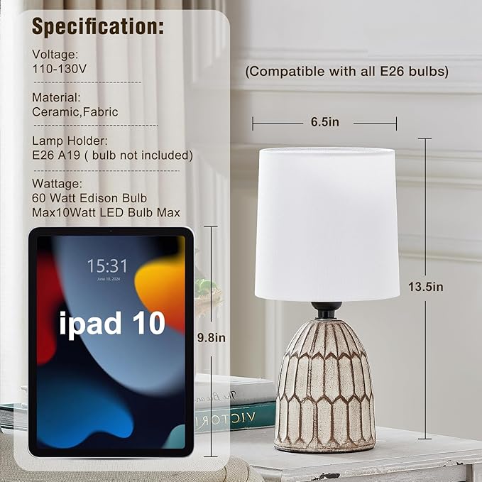 - šš¦šš„š„ ššš¦š©š¬ ššššØš«ššš¢šÆš: Measuring at 13.5x6.5 inches, these small ceramic lamps are designed to fit in small spaces that require additional lighting. Whether it's a self-study area, small dorm, apartment, bathroom, kids' room, nursery, or side table, these lamps for living room end tables are compact and convenient for any setting