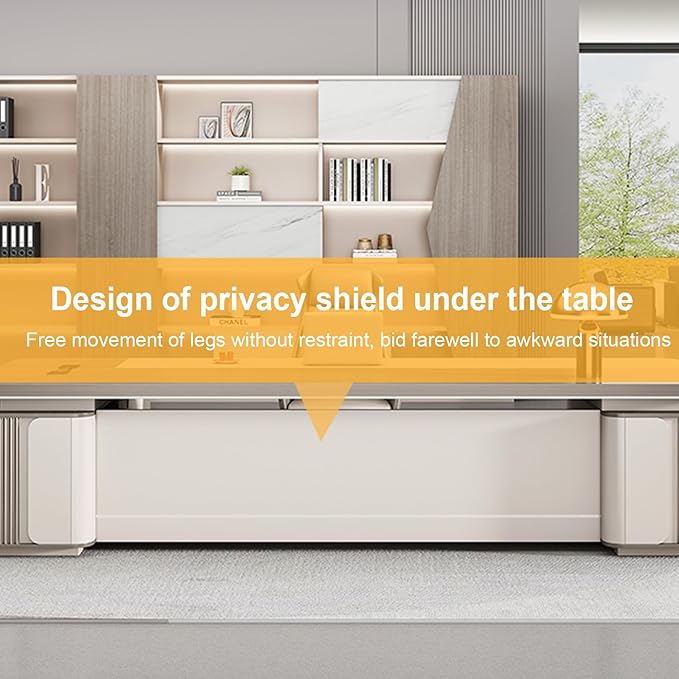- 【Under-Table Privacy Panel Design】The unique under-table privacy panel design of this executive office desk provides you with more personal space. You can move your legs freely without worrying about embarrassing situations. This design protects your privacy and allows you to work more comfortably and relaxedly.