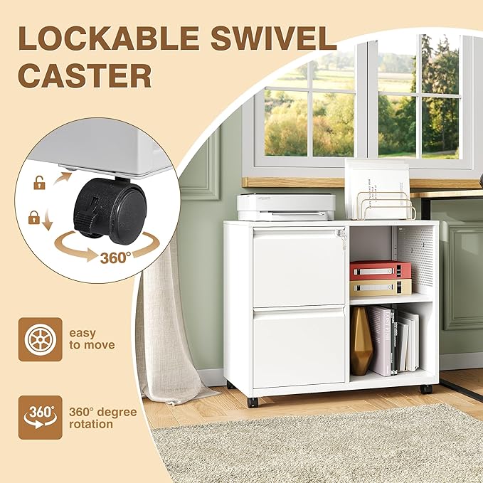 - 【Flexible and Convenient & Lockable Storage Cabinet】: The mobile file cabinet is equipped with 4 360-degree rotating casters (2 lockable, 2 standard), which are easy to move and allow you to move the filing Cabinets with Drawers freely anytime and anywhere. Lockable casters provide stability, and it can be secured next to or under a table. Ensures smooth rolling, prevents scratches, and protects floors, suitable for various environments such as offices, classrooms, and homes.