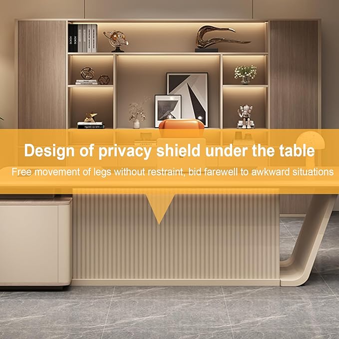 - 【Grille-Style Front Panel】This executive office desk has a unique grille-style front panel design, which not only enhances the aesthetics of the product but also offers a certain level of privacy protection. At the same time, it does not hinder air circulation, creating a comfortable working environment for you.