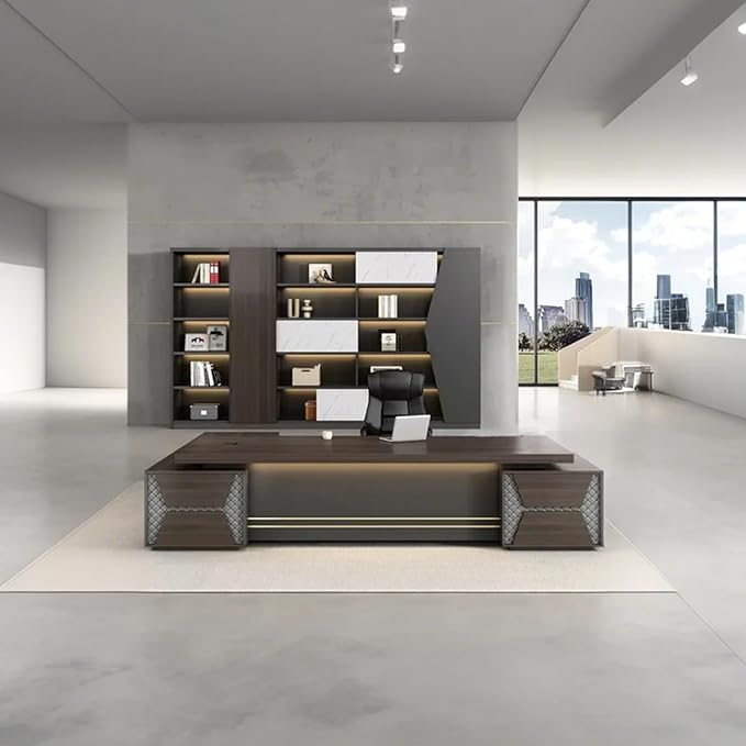 - 【High-Quality Hardware Handles】The handles of the executive office desk are smooth and comfortable to touch, making it easier and smoother to open and close drawers and cabinet doors. The high-quality hardware materials ensure that the handles are sturdy and durable, not easy to damage, and can maintain a good appearance and performance even after long-term use.