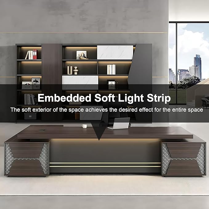 - 【Rounded Corner Collision-Proof Design】The desk of the executive office desk is designed with rounded corner collision-proof design, effectively reducing unnecessary collisions and injuries. The smooth and rounded edges not only make the office desk more aesthetically pleasing but also minimize the risk of pain and damage when accidentally bumping into the desk, creating a safer office environment for you.