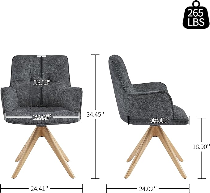 Art Leon Swivel Chair - Mid Century Modern Desk Chair Without Wheels, Fabric Upholstered Accent Chair with Oak Wood Legs for Small Space Living Room Bedroom, Dark Gray