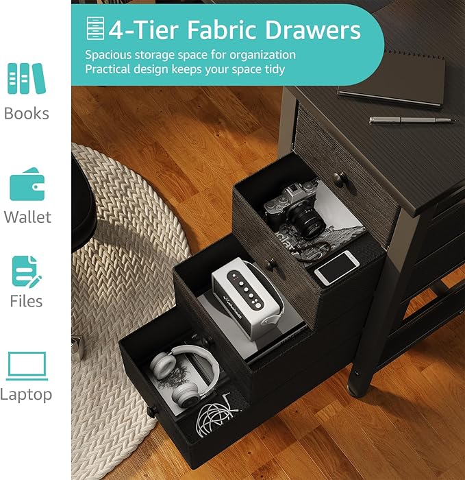 Lufeiya Gaming Desk with 4 Fabric Drawers & Storage Shelves, 47 inch Computer Writing Work Study Desk for Home Office Bedroom, Modern Simple Student PC Desks Table, Black
