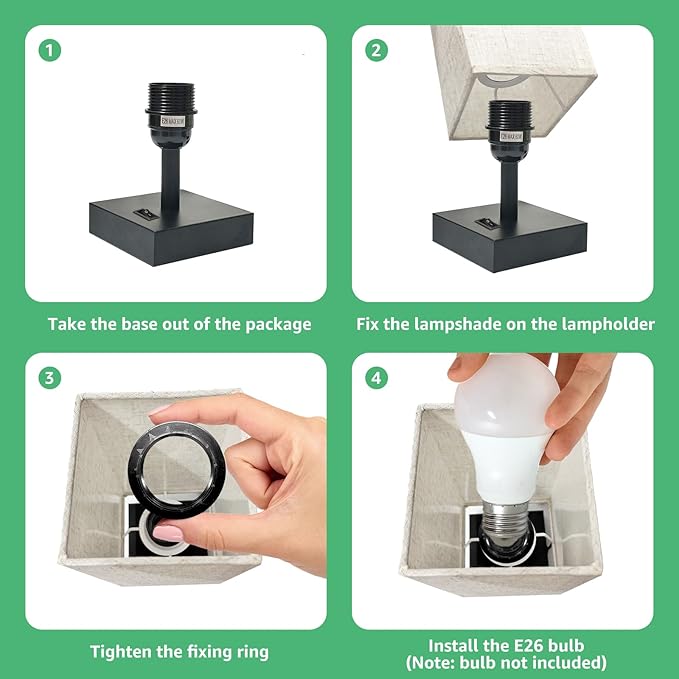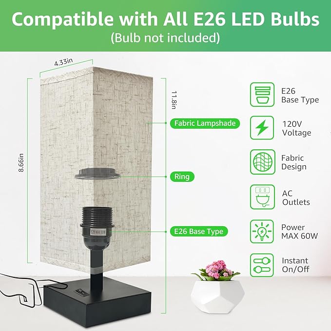 - 【Instant On/Off 】This lamps for night stands comes with an instant on/off switch and AC outlets(2-prong), plug and play, one-button switch, easy to install and use. Please note that bulbs are not included. (Please use the LED bulb, max watt of the LED bulb is 60W)