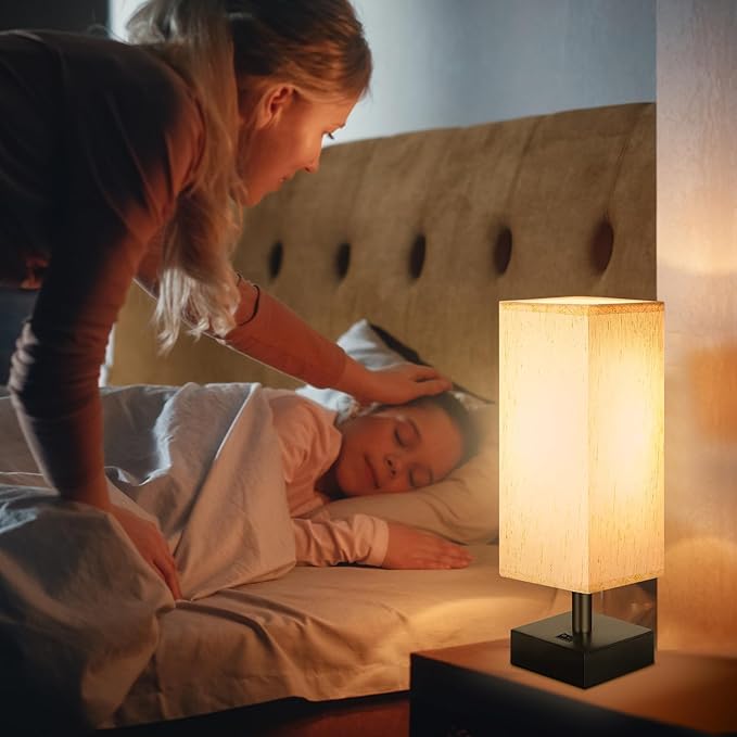 - 【Minimalist Design】This 11 Inch bedside lamps elegant and stylish appearance, Square flaxen open fabric design lampshade matching small black base. Exquisite size and unique design make this small table lamp an Ideal choice for living room, bedroom, study, student's room, etc., adding a cozy and warm atmosphere to your bedroom or living room home decoration.