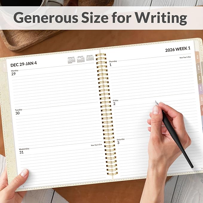 SUNEE 2026 Weekly & Monthly Planner 9"x11.2"- 12 Month (January 2026 - December 2026), Linen Cover, Pocket, Bookmark, Notes, Monthly Tab, Beige