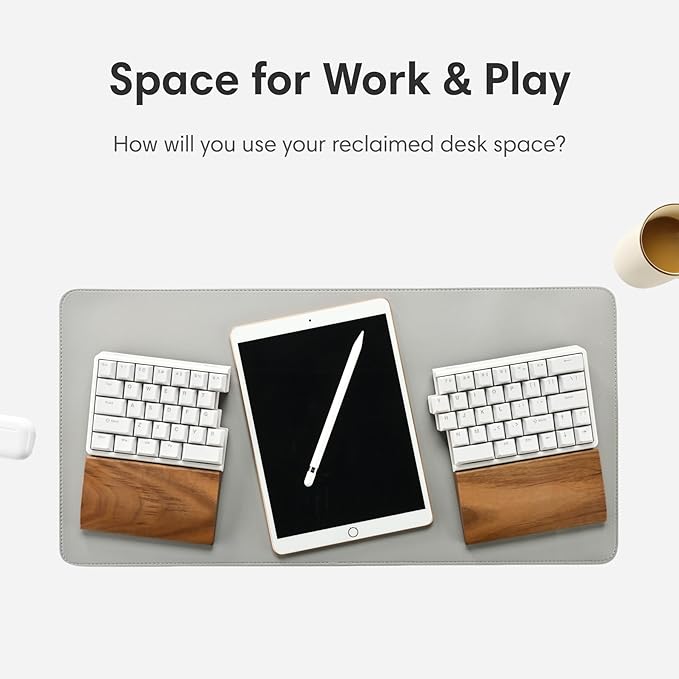 - Ergonomic Design for Neutral Posture: The split design, integrated tenting, and walnut palm rest help reduce strain associated with traditional keyboards. This design can alleviate wrist pain, back pain, and shoulder pain, reducing the risk of RSI and Carpal Tunnel Syndrome. Enhance your desk posture and overall comfort effortlessly.