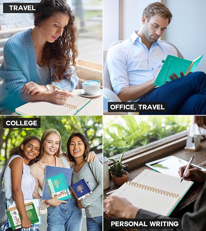 - 【Easy Tear-off Design & Thick Paper Quality】The spiral bound notebook pages are Easy to tear-off, ideal for sharing notes or removing pages without hassle. The thick paper minimizes ink bleed-through, ensuring clarity and legibility in your notes. Whether you're using it as a daily journal, travel journal, or journaling notebooks, this lined notebook offers a smooth writing experience. As a wide ruled notebook, it's perfect for thorough note-taking.
