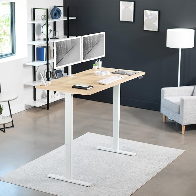 VIVO Electric 60 x 30 in Standing Desk, Memory Height Adjustment, 1B Series, Light Wood Top White Frame, DESK-KIT-1W6C-30