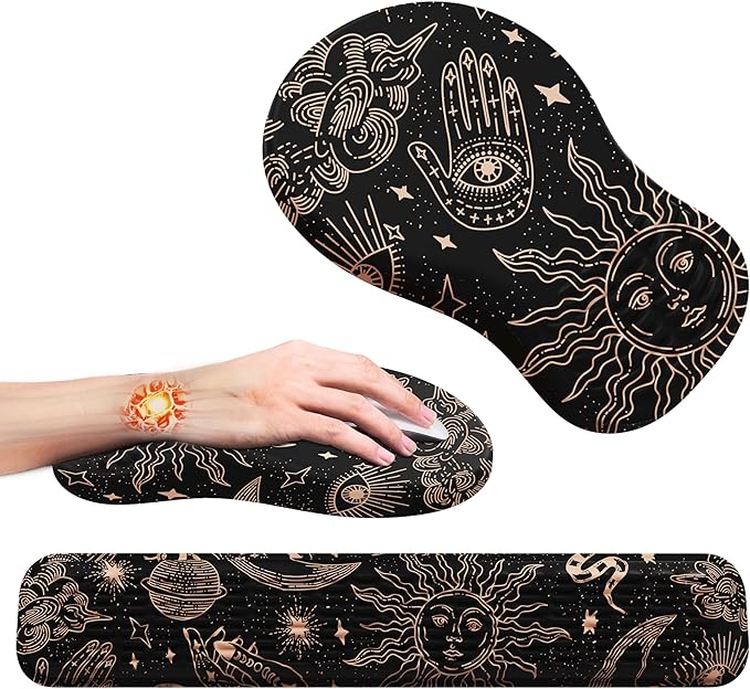 MEKASS Ergonomic Mouse Pad and Keyboard Wrist Rest Set, Super Soft Memory Foam Desk Wrist Support for Computer Keyboard, Non-Slip Arm Palm Rests Cushion for Typing Gaming Office Laptop (Demon's Eye)