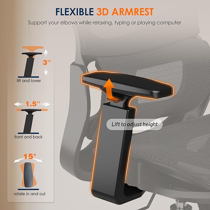- 3D Adjustable Armrests - The heavy duty office chair features versatile, generously padded armrests for 3 adjustments(up and down, front and back, in and out), ensuring optimal arm support while typing or playing computer. The large 2D headrest supports your neck to release stress. Heavty-duty office chair is perfect for users 5'4" to 6'2".
