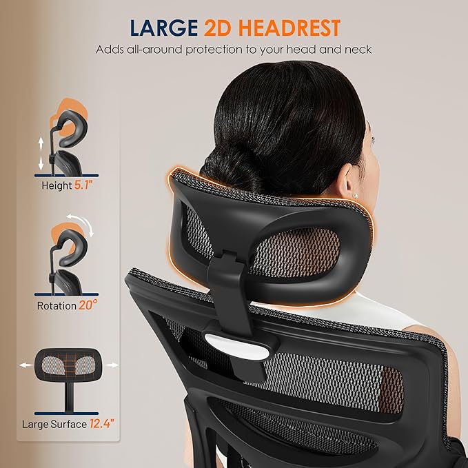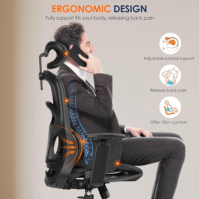 GABRYLLY Ergonomic Office Chair, High-Back Desk Chairs with Adjustable Lumbar Support, Headrest, Tilt Function, Soft Wide Seat and 3D Armrest, 300 LBS Sturdy Home Mesh Chair Task Chairs, GY1070
