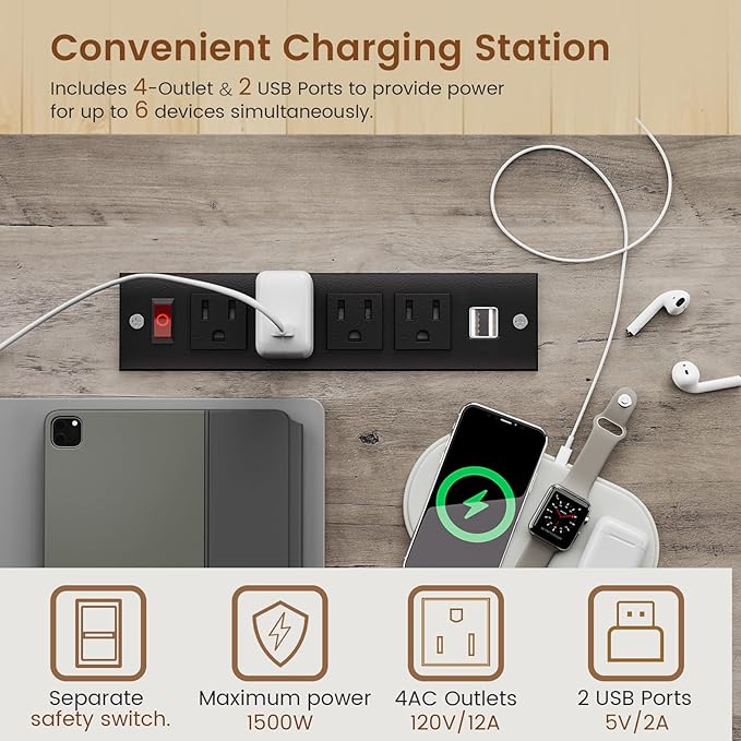 - 【User Friendly】The farmhouse executive desk includes a built-in power strip with 4 outlets & 2 USB Ports provides convenience for charging your gaming gear, tablet、printer or phone.Don't worry about not having enough power sockets. Also includes an on-off switch, thanks to the on-off switch, one-button power off to ensure safe electricity use, which strengthens security.