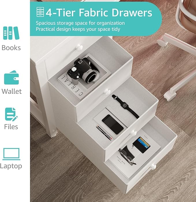 Lufeiya White Computer Desk with Drawers - 55 Inch Long Study Work Writing Desk for Home Office Bedroom, Reversible Simple Modern Cute PC Desks with Fabric Drawer, White