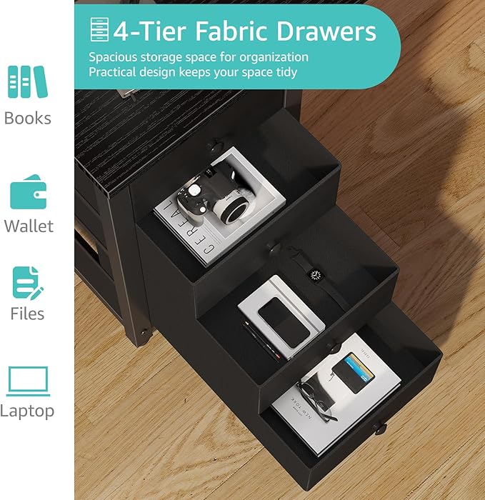 Lufeiya Gaming Desk with Fabric Drawers - 55 Inch Long Study Work Writing Reversible Computer Desk for Home Office Bedroom, Simple Modern Cute PC Desks with Drawer, Black