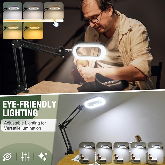 - Perfect for Close Work: The flexible metal arm design allows you to position the light exactly where you need it, making it the perfect assistant for anyone who needs to focus on intricate details. Whether you're an architect, jeweler, artist, or hobbyist, this desktop magnifying glass with light offers the clarity and stability you need to perform your best work.