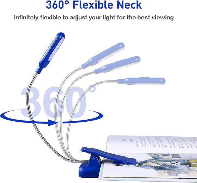 - 【360°Flexible Goose Neck & Non-slip Clip Design】- The Vavofo's reading light has the 360 degree adjustable neck with multi use non-slip clip which allows you to position the light exactly where you need it, creating the perfect private reading space for you while reading in bed, in college dorm, or on a plane, train, or bus. It can also be placed on the tabletop, work surface, etc. The lightweight, portable, & travel-friendly only 2.59 oz weight