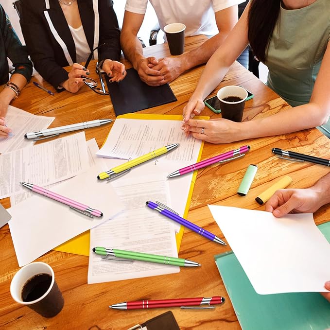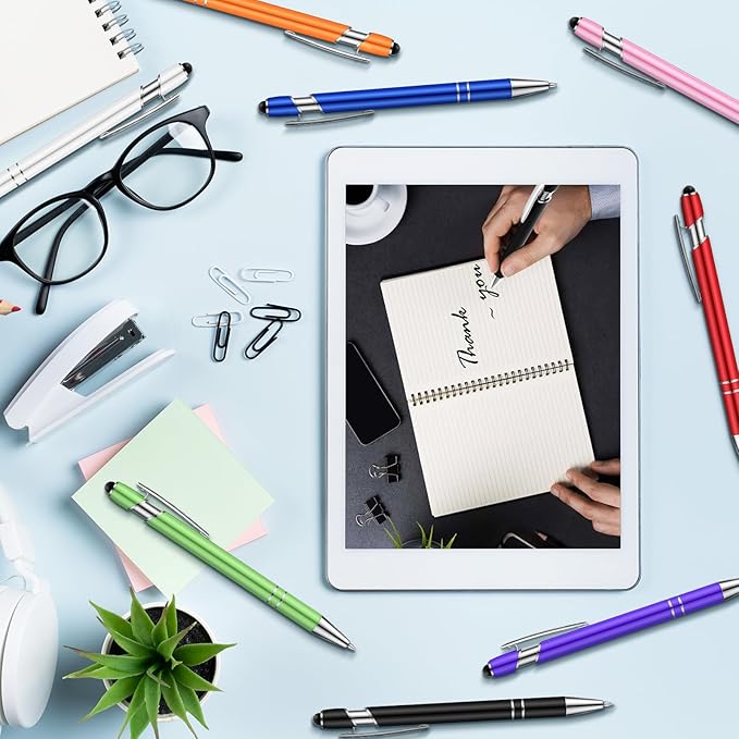 Tenare 12 Pieces 2 in 1 Stylus Metal Ballpoint Pen with Stylus Tip, 1.0 mm Black Ink Ballpoint Pen for Touch Screens(Assorted Color)