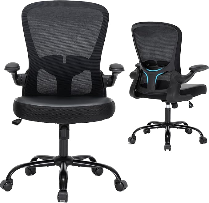 Office Chair, Ergonomic Desk Computer Chair with PU Leather Cushion, Home Office Desk Chairs with Flip-Up Arms and Adjustable Lumbar Support