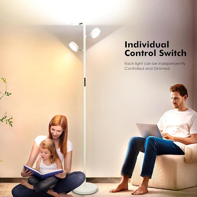 - Upgraded High Bright Floor Lamps: Our LED tree floor lamp adopts a special 3 adjustable heads design, which can be rotated 350° and flipped vertically 90°, and each LED lamp can be independently controlled and dimmed. It emits light at a wider angle than other lamps for living room. The simple streamlined design adds a fashionable and modern atmosphere to your home, It is an ideal decorative lighting for office, home, bedrooms, study rooms, etc