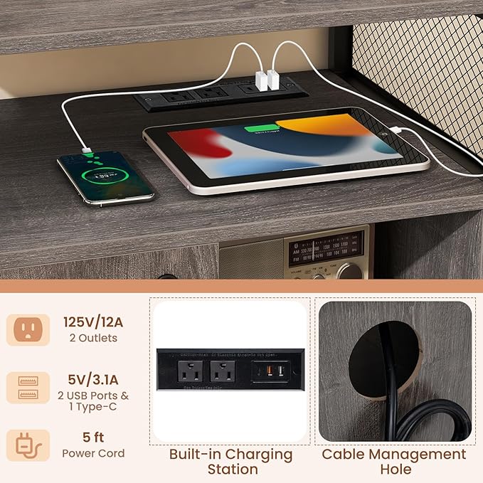 - Make Charging Easier: This mobile file cabinet features 2 outlets(125V/12A), 2 USB ports and 1 type-C(5V/3.1A) that keep your devices powered up and within reach. Additionally, the cable management hole makes it easy to keep wires organized and out of sight.