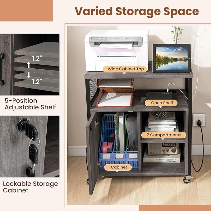- Stylish & Functional Piece: Perfectly suited for use as a printer stand or an office organizational piece, this mobile file cabinet serves all purposes. Plus, its sleek design adds an elegant touch to your home and office.