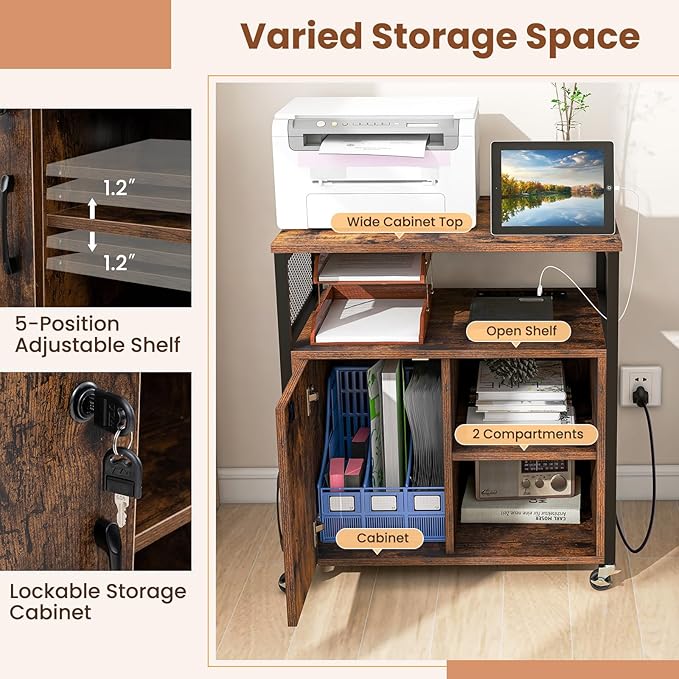- Stylish & Functional Piece: Perfectly suited for use as a printer stand or an office organizational piece, this mobile file cabinet serves all purposes. Plus, its sleek design adds an elegant touch to your home and office.